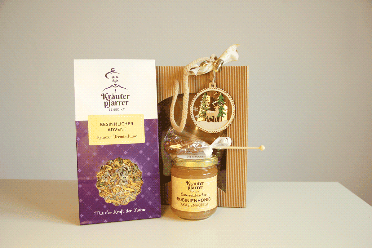 Die Teemischung „Besinnlicher Advent“ kann uns helfen, in der stressigen Adventzeit Ruhe und Besinnung zu finden. Apfelschalen, Hagebutten, Anis, Heidkraut, Lavendel, Melisse, Salbei, Ysop, Koriander und Ringelblume sind enthalten. Möchte man einen etwas herben Honig mit hohem Fermentgehalt, ist der Edelkastanienhonig genau richtig. Er hat einen hohen Wert elektrischer Leitfähigkeit und eignet sich als Brotaufstrich, zum Süßen von Tees oder als gesunde Nascherei.