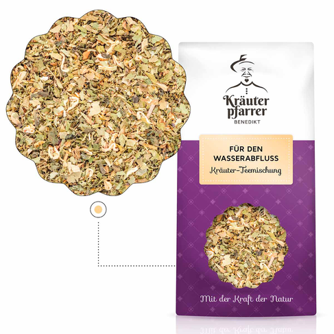 Bestandteile eines gesunden Lebensstils. Unsere Teemischung „Für den Wasserabfluss“ vereint eine ausgewogene Auswahl an Kräutern, die für ihre traditionelle Verwendung und ihr angenehmes Aroma geschätzt werden.